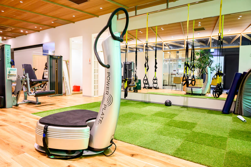パーソナルジム「こもれびテラス」は疫病予防運動施設として保険で通うことも可能な施設です。本格的トレーニングができるトレーニング機器や有酸素マシーンなどが揃っております。
