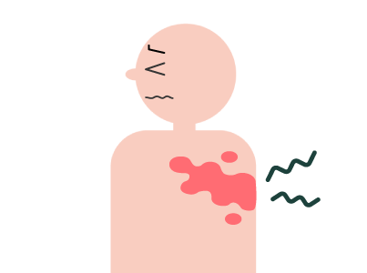 - 痛みのある部位に赤い発疹や水ぶくれ