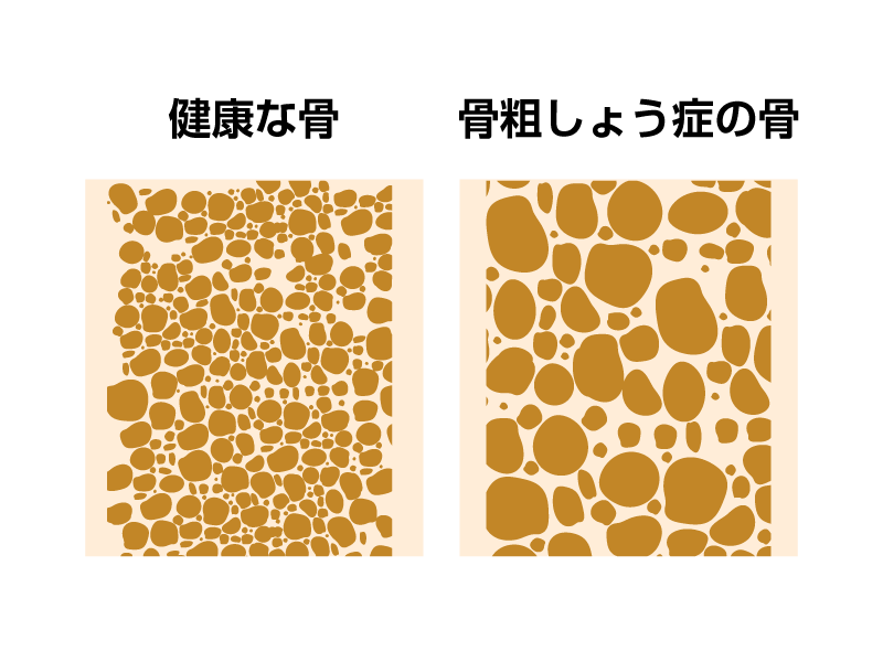 骨粗しょう症とは、骨量(骨密度)の低下により強度が弱くなり、骨折を起こしやすくなる病気です。